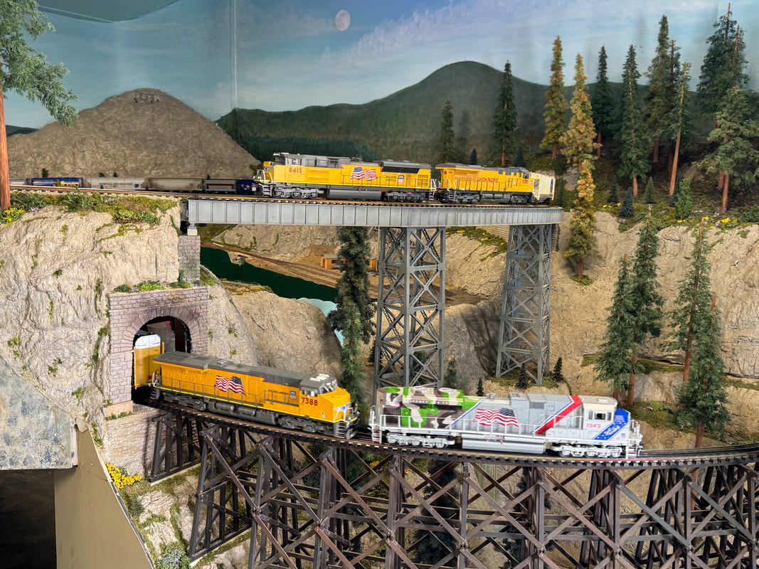 Our club happily welcomes all different types of O gauge trains. On any given Saturday you might see the latest Lionel Legacy or MTH DCS Proto 3 engines running alongside a LionChief engine or even a conventional one! Join us in person any Saturday to see for yourself - until then, enjoy a sampling of our members' impressive collections here.